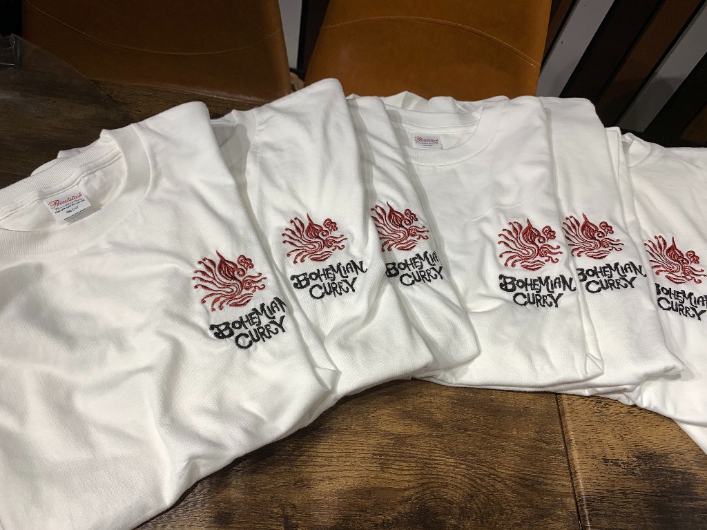 松原市で美味しいカレー屋さん 『ボヘミアンカリー』さんからスタッフのTシャツのご依頼を頂きました。ロゴがかかっこいいので映えますね!!ご依頼ありがとうございました!!