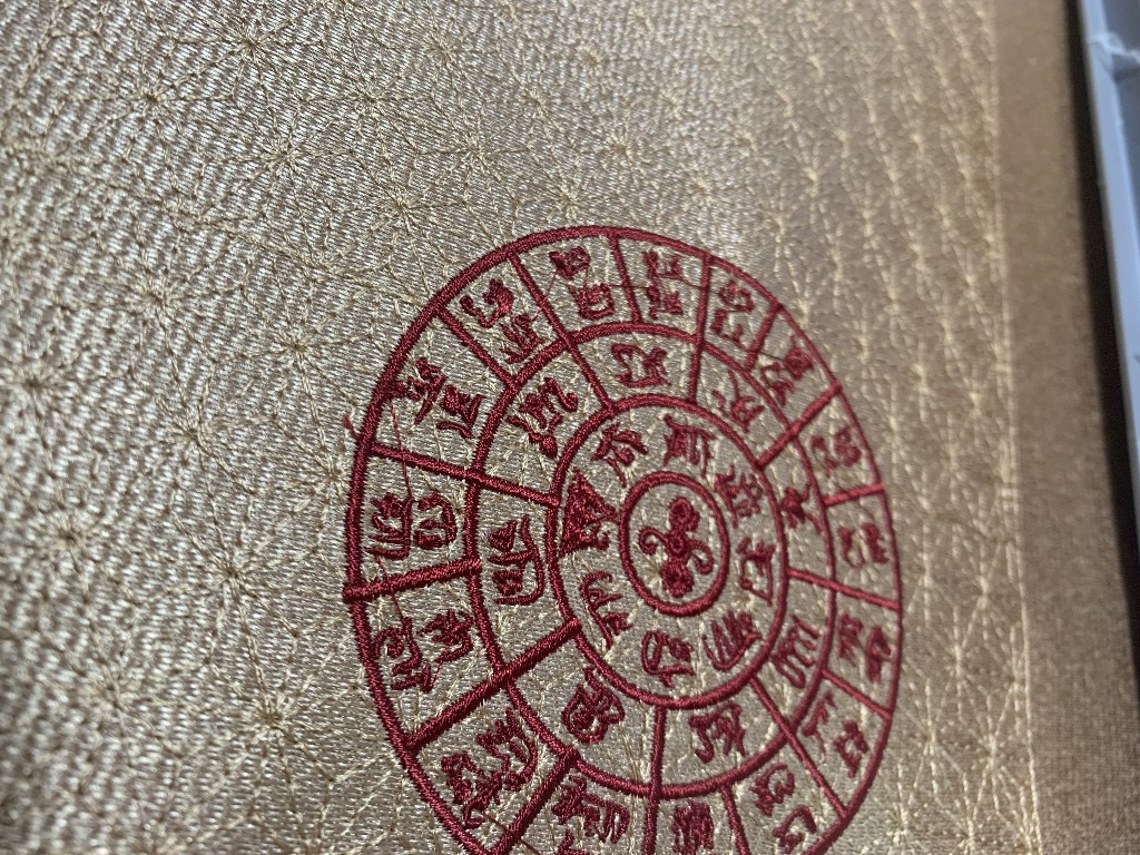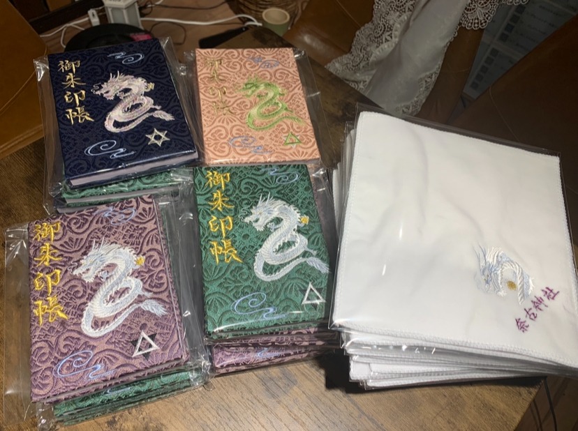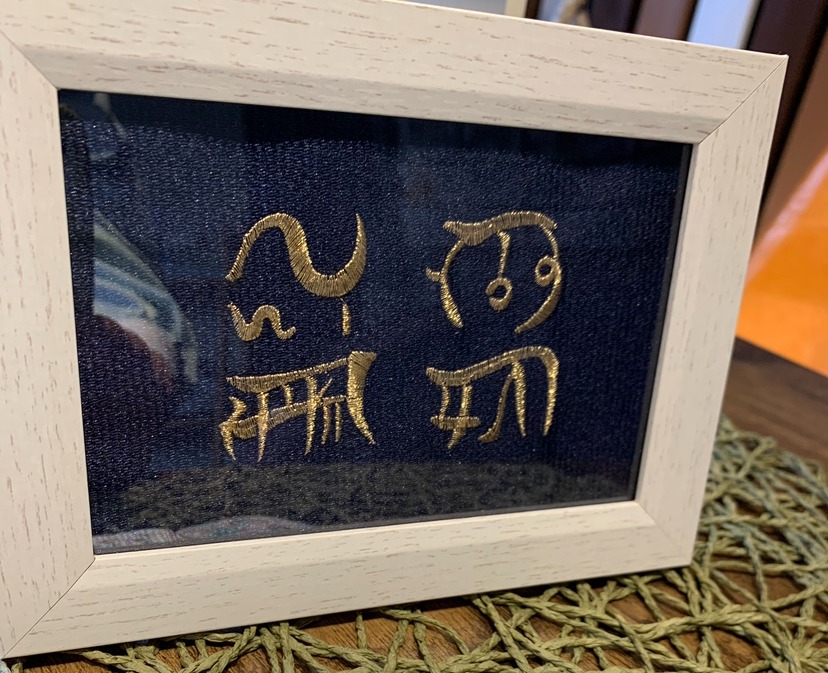 商売繁盛の意味合いのある龍体文字を刺繍させて頂きました。大変気にいっていただきました!